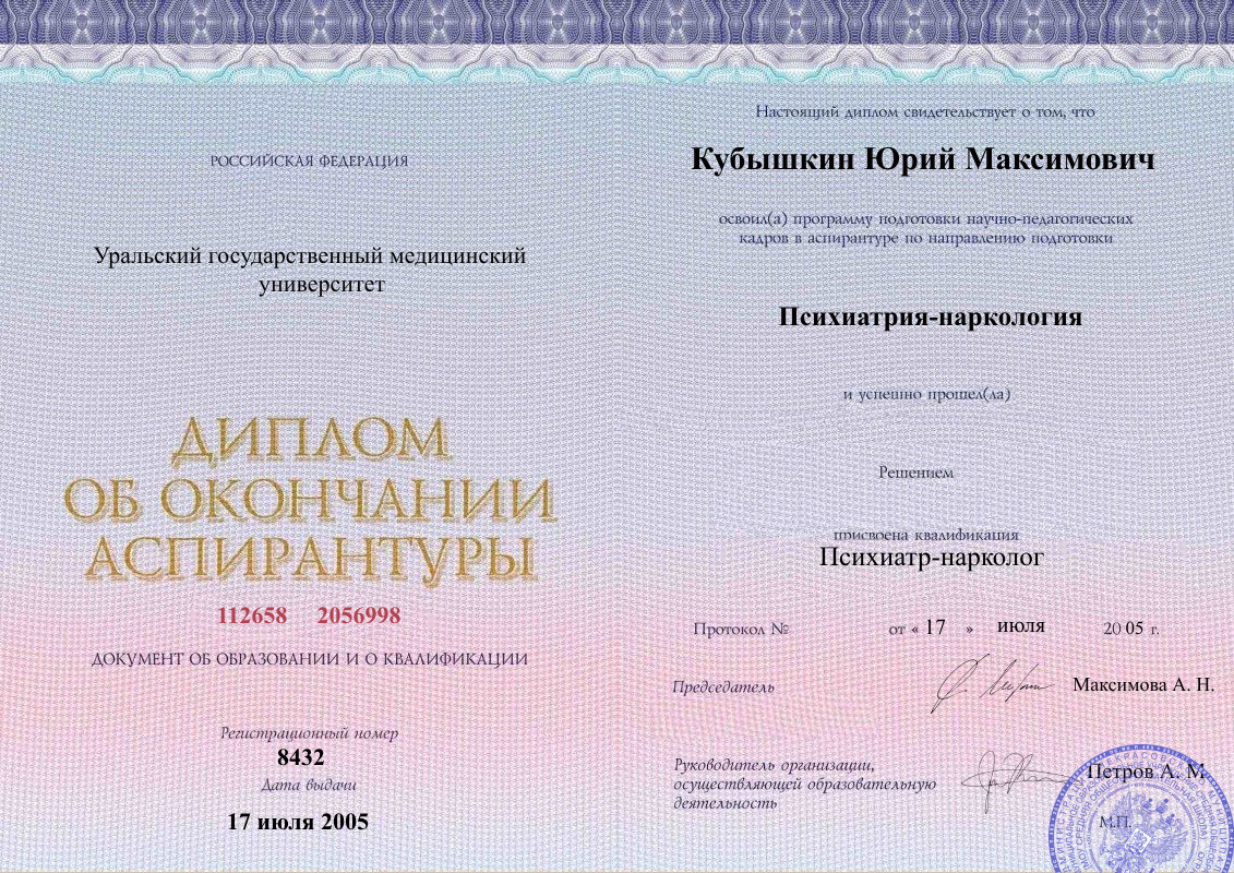 Специализация: Главный врач, доктор наук, врач высшей категории, нарколог